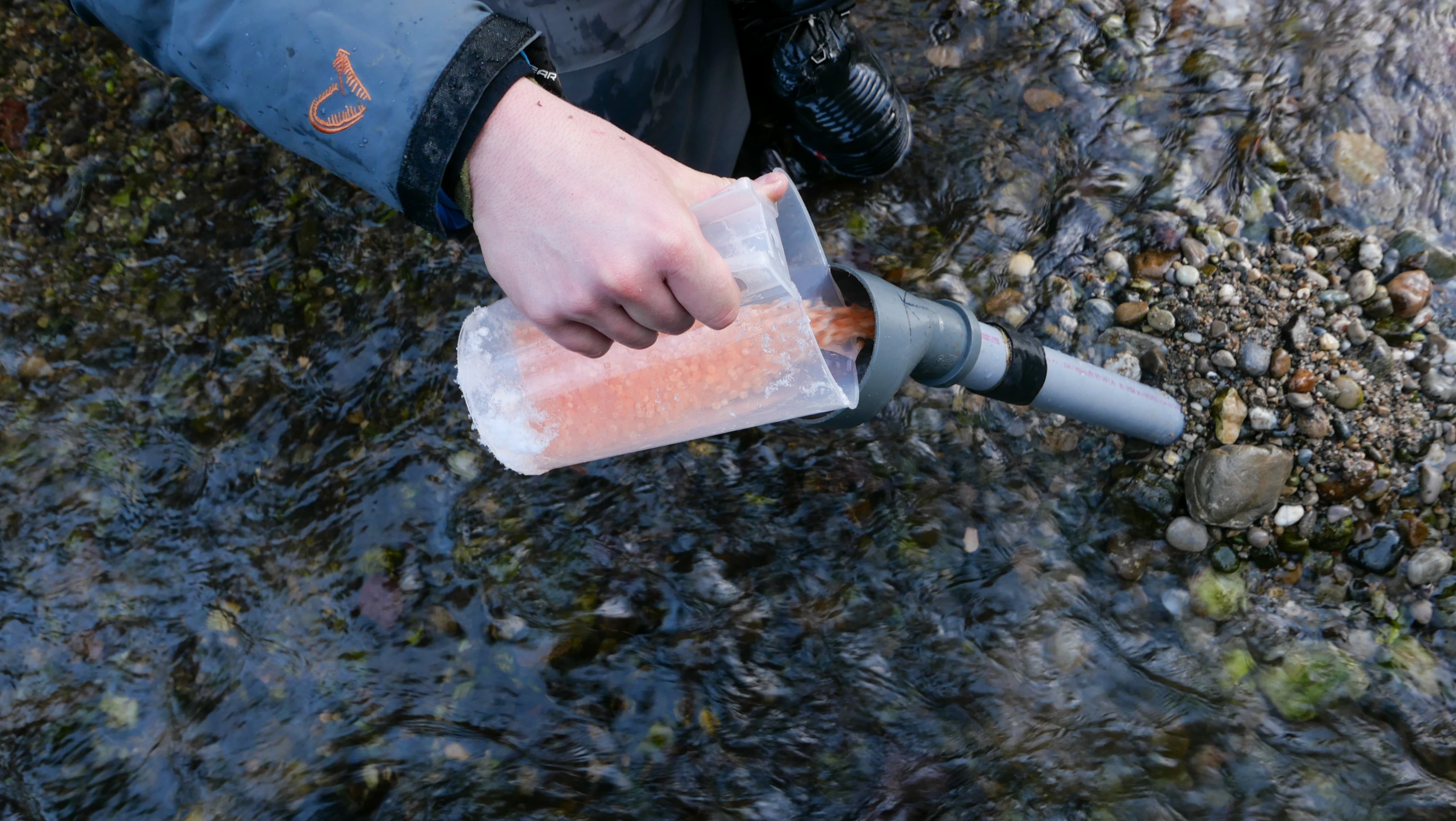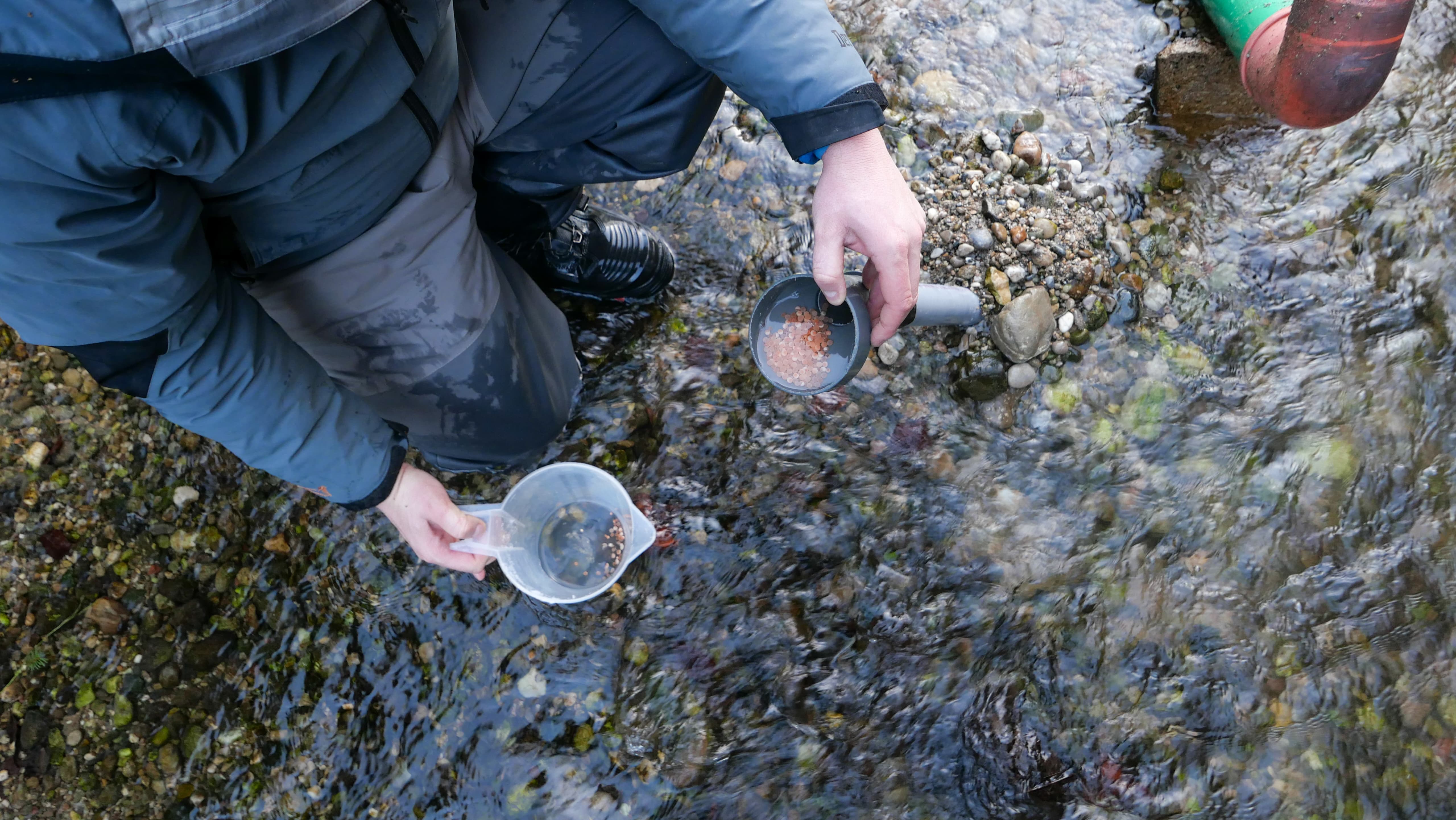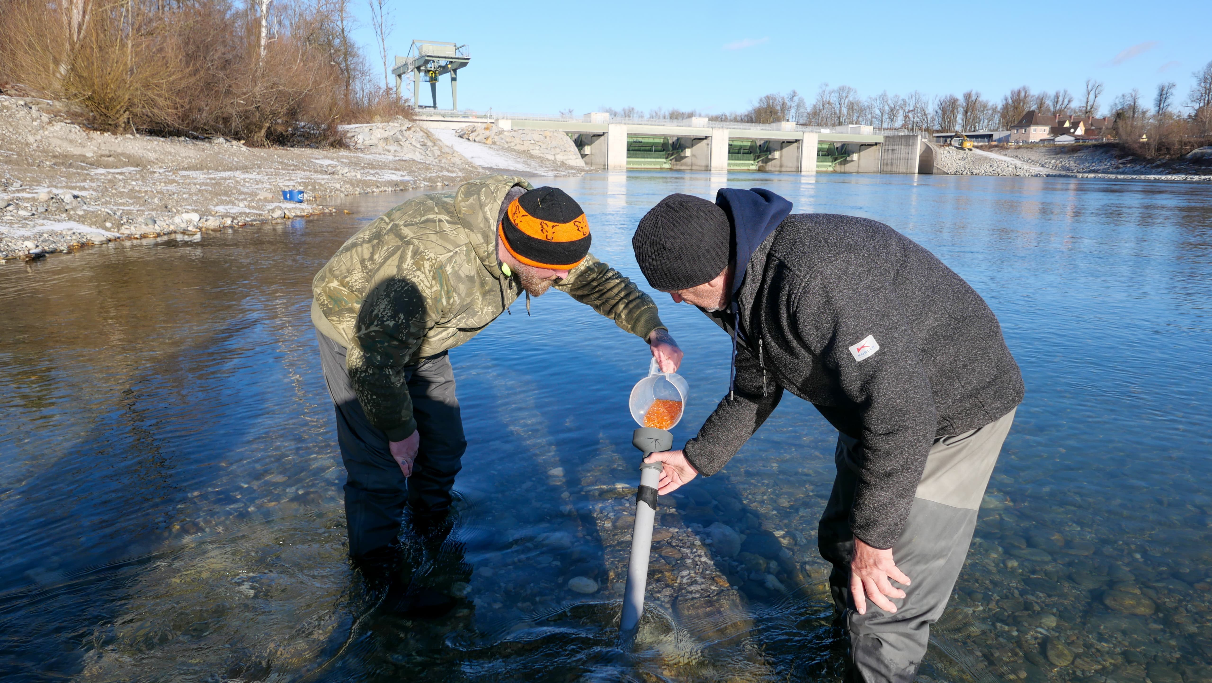 Im Frühjahr 2025 führte das ehrenamtliche Artenschutz- und Erhaltungsteam des Vereins bereits zum dritten Mal eine gezielte Maßnahme zur Stärkung des Huchenbestandes durch. Insgesamt wurden 15.000 Hucheneier im sogenannten Augenpunktstadium in drei speziell konzipierte Schwimmboxen eingebracht. Diese wurden in einem Umgehungsbach eines Stauwerks platziert – einem Bereich mit stabilen Wasserständen und optimalen Bedingungen für die Entwicklung der empfindlichen Eier.